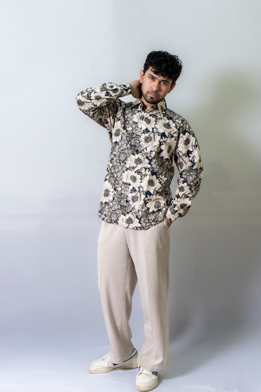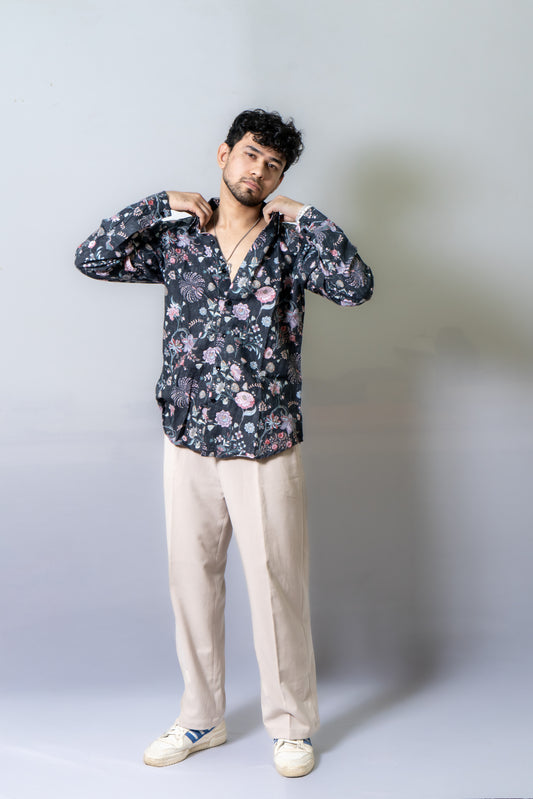 Regular price Rs. 899.00Regular priceUnit price / perRs. 1,900.00Sale price Rs. 899.0052% off!SaleFloral Printed Shirt The Night Plush- Black