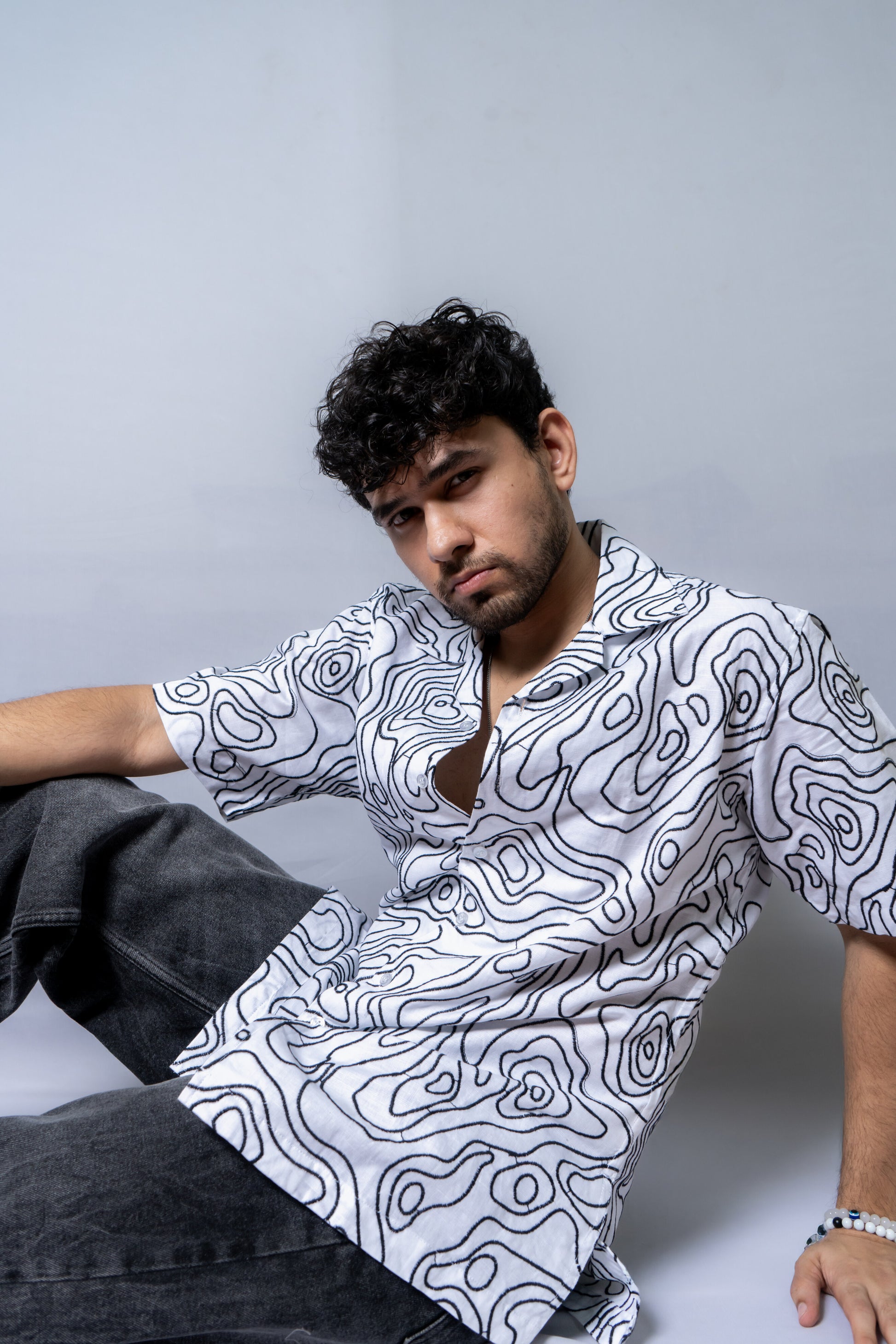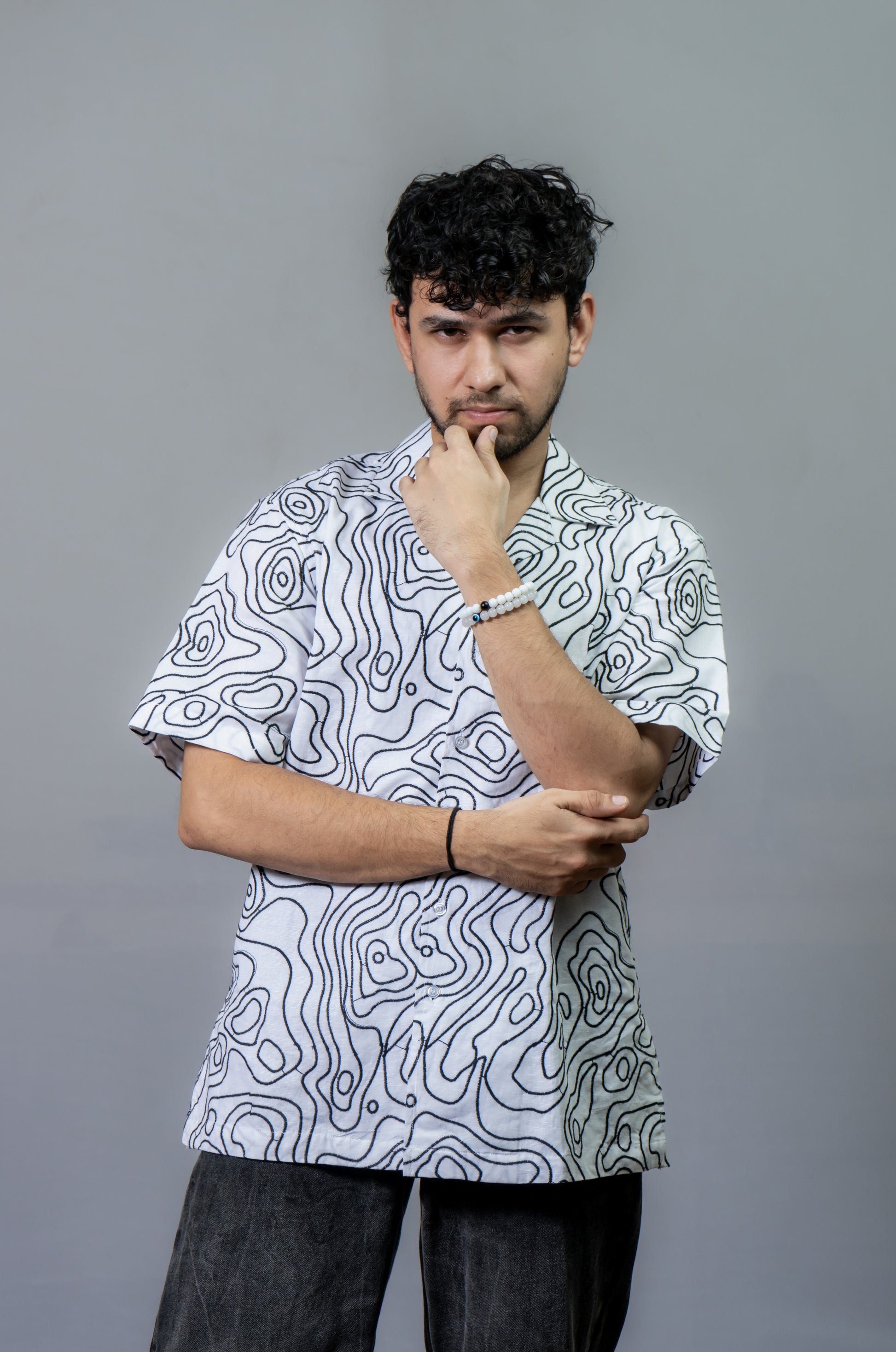 Hemp All Over Embroidery Shirt The Wiggle Love- Black&White